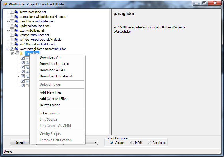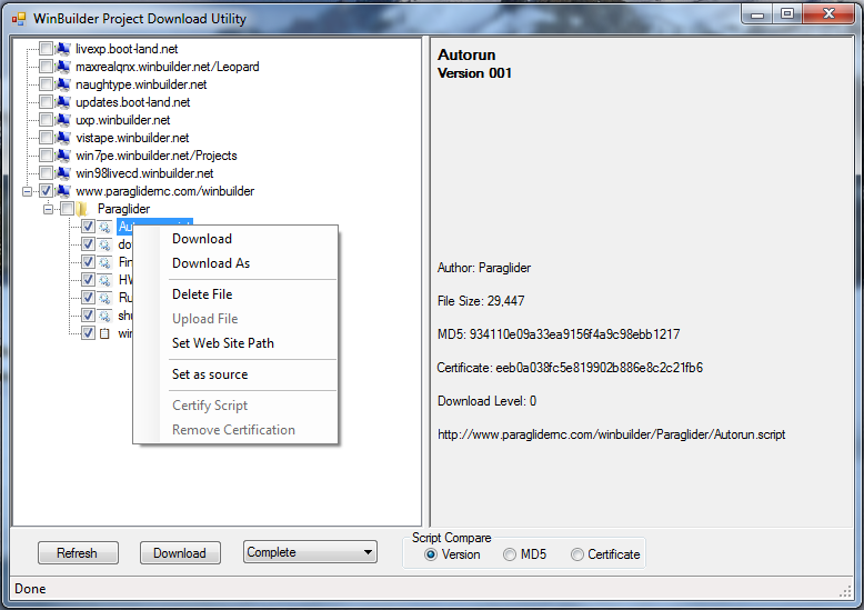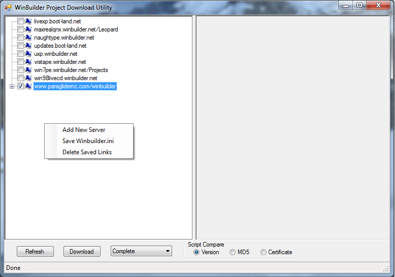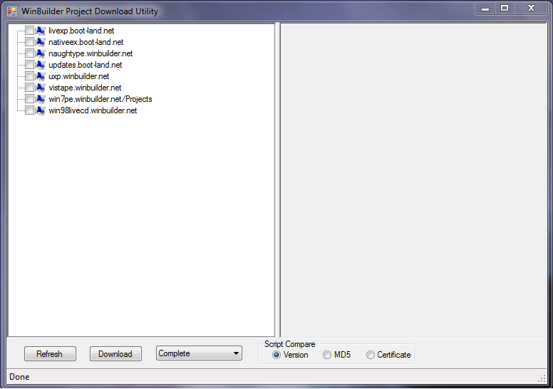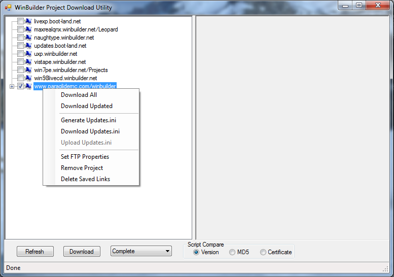 - Allows projects to be downloaded from the server - will use an existing winbuilder.ini in the same directory as the program to get the server list. If the file does not exist it will be downloaded from the winbuilder server to get the project list.